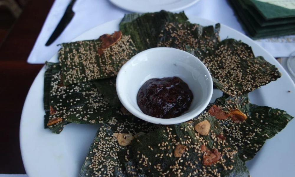 En Laos, es común comer Kaipen con la salsa de Jaew Bong. Esta salsa se elabora a partir de chiles asados y piel de búfalo, aportando un sabor picante y salado que armoniza perfectamente con el Kaipen. Cuando se combinan, la textura crujiente de las algas secas y el sabor sabroso de la salsa de Jaew Bong crean una experiencia culinaria extraordinaria para los turistas.