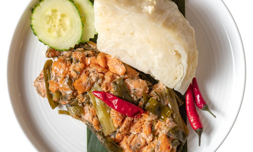 Mok Pa Laos se suele servir con arroz y salsa agridulce. Este plato se puede encontrar fácilmente en restaurantes tradicionales y suele compartirse en reuniones familiares o ocasiones especiales en Laos. Su textura suave y el aroma de la hoja de plátano envuelven los sentidos, convirtiéndolo en una delicia imperdible para cualquier amante de la buena cocina.