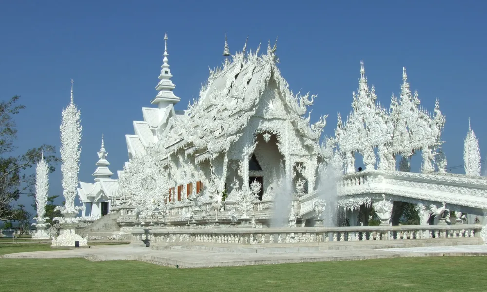 Ubicado en Chiang Rai, el Templo Blanco Tailandia (Wat Rong Khun) es una de las estructuras más singulares de Tailandia templo. Este templo está diseñado íntegramente en blanco puro, símbolo de la pureza de Buda, y se combina con miles de espejos brillantes que reflejan la luz para crear una belleza mágica inolvidable. Cada detalle escultórico transmite un profundo mensaje sobre la filosofía budista y la reencarnación.