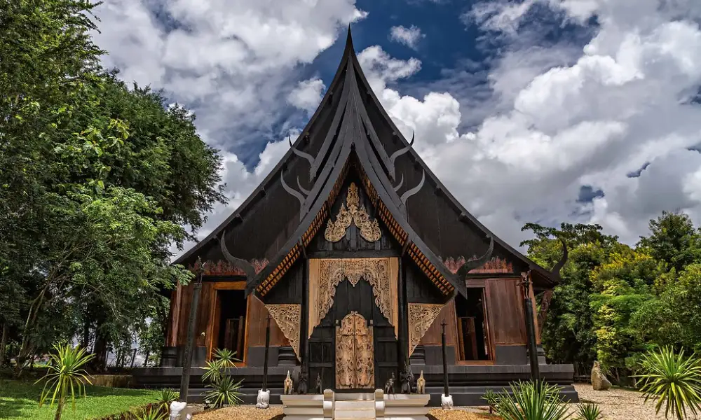 El Templo Negro, también conocido por su nombre completo, Templo Negro de Baan Dam, se inspira en las características culturales tradicionales de las casas del norte de Tailandia en la antigüedad, incluyendo los períodos Lan Chang, Lanna y Suvarnabhumi. Más específicamente, este lugar combina elementos misteriosos y aterradores en sus obras arquitectónicas y obras de arte, intrincadamente talladas con delicados patrones. Es esta singularidad la que fascina por la belleza de la arquitectura, a la vez que evoca una sensación escalofriante gracias al color oscuro que lo recubre.
