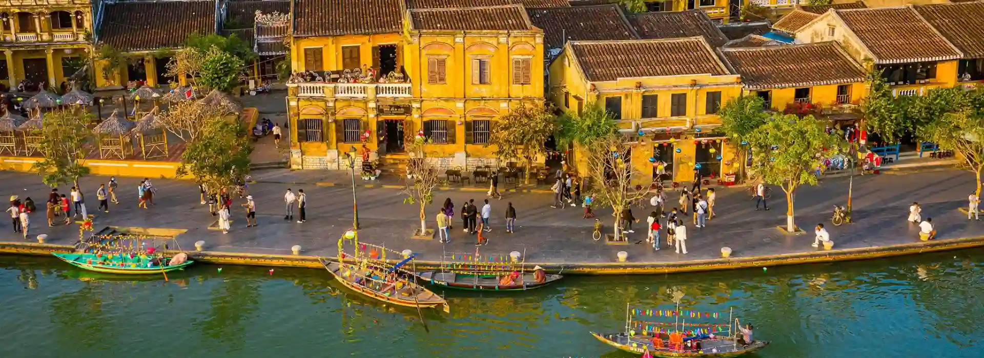 Por la tarde, realizamos una visita a la ciudad antigua de Hoi An. Pasearemos por el famoso Puente Cubierto Japonés y visitaremos la casa antigua de Quan Thang, destacada por su arquitectura tradicional y detalles artesanales.