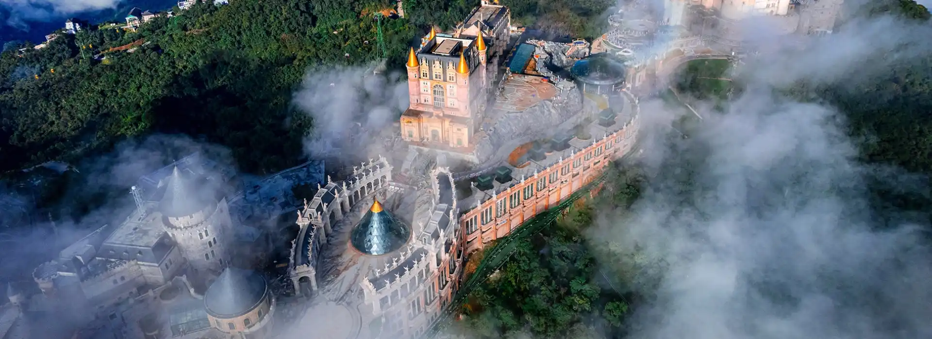 Los recogen en la recepción del hotel para trasladarlos a Ba Na Hills, donde realizan un paseo en teleférico, desde el que disfrutan de las vistas panorámicas de Quang Nam – Danang City desde lo alto.