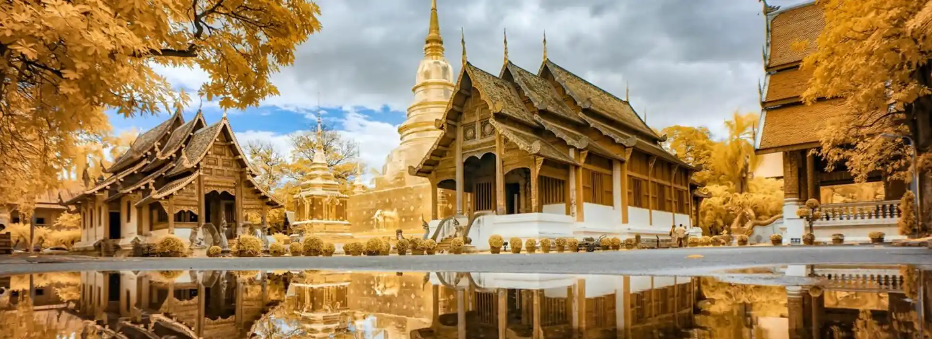 Salida para visitar el Triángulo de Oro, la zona donde confinan tres países, Myanmar, Laos y Tailandia, divididos por el río Mekong y antiguamente, importante centro de tráfico de Opio. Visita el museo del Opio. Seguiremos con la visita al templo blanco Wat Rongkhung. Continuaremos hacia Chiang Mai, la Rosa del Norte y la ciudad más importante de la región. Sus orígenes se remontan al Reino Lanna en el siglo XIII. La ciudad antigua se encuentra rodeada por un foso y está amurallada. Llegada y visita el templo Doi Suthep, símbolo de la ciudad a 1.053 metros de altura e importante centro de peregrinación.